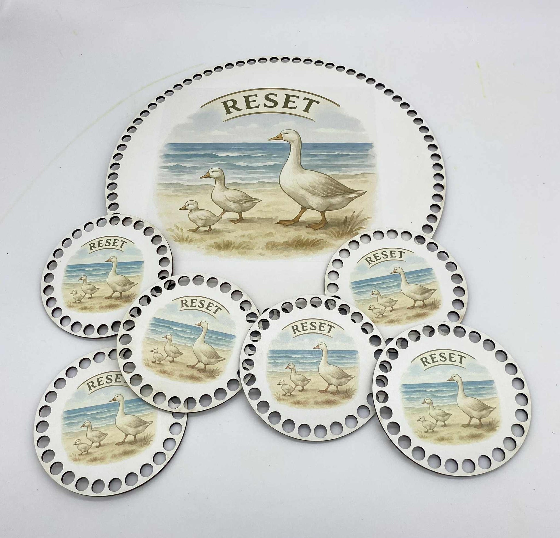 Okrągła baza o średnicy 30 cm została wycięta laserowo z białej płyty HDF o grubości 3 mm. Jej krawędzie są gładkie, a otwory o średnicy 9 mm precyzyjnie rozmieszczone – idealne do tworzenia koszyków lub dekoracyjnych tac szydełkiem bądź techniką makramy. Do kompletu jest 6 małych baz 11 cm i otworami na sznurek 9 mm.