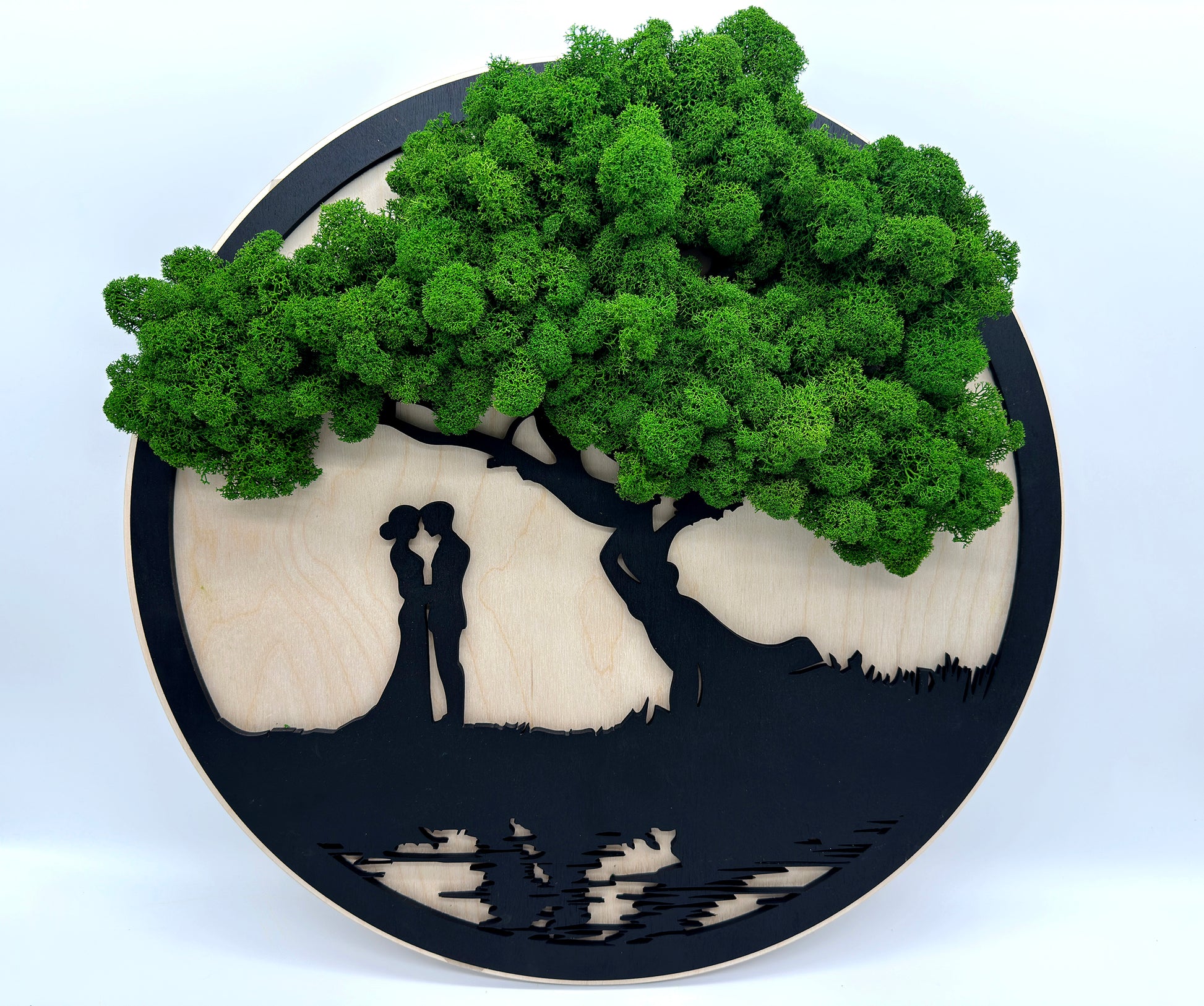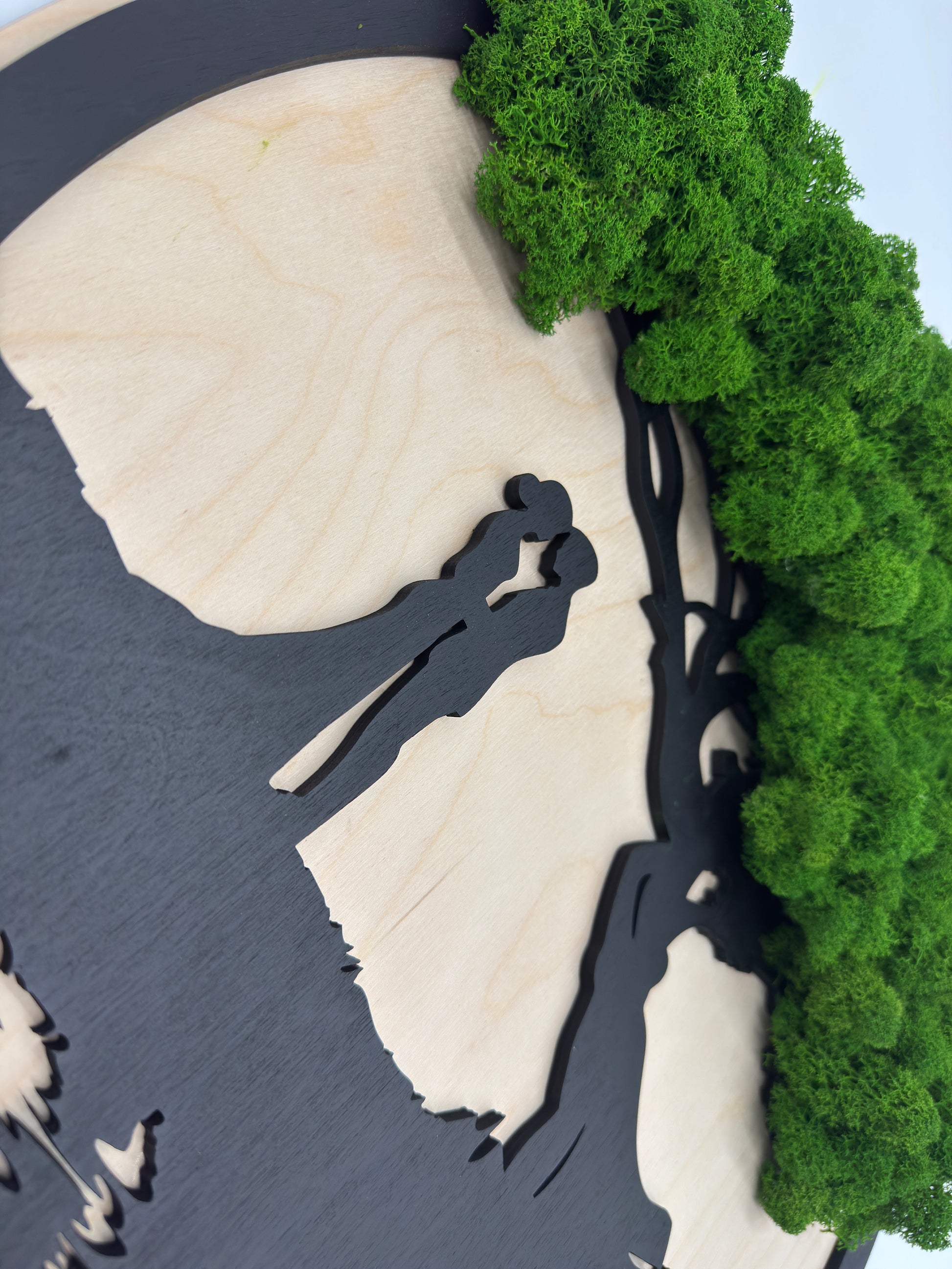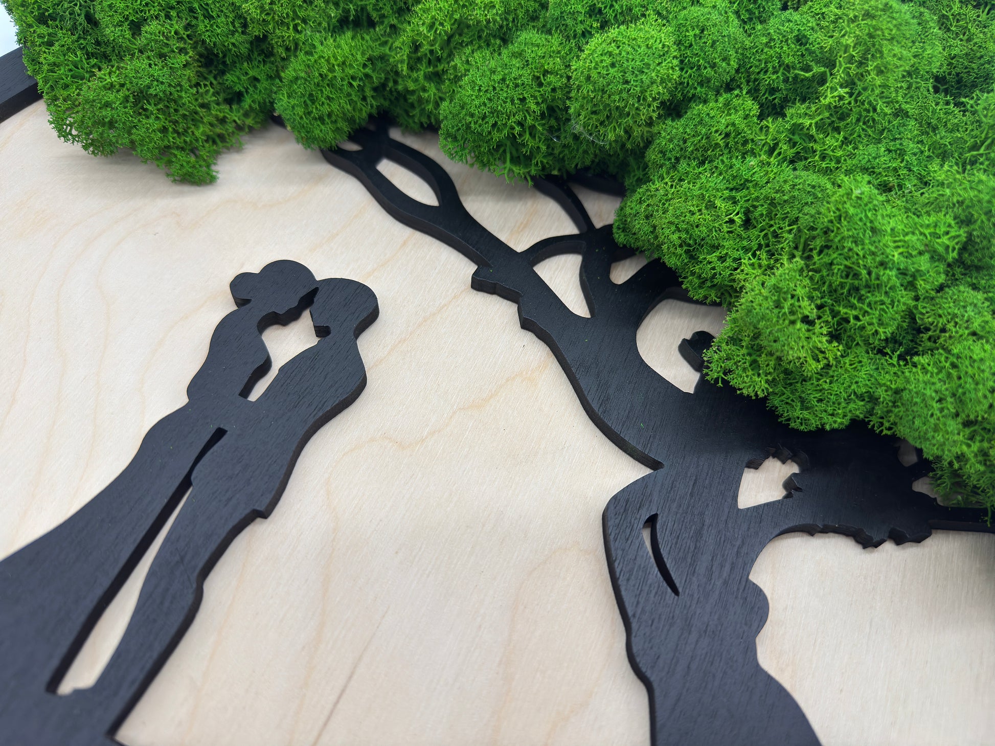 Dekoracja ścienna z chrobotkiem i brzozową sklejką - doskonały prezent dla zakochanych