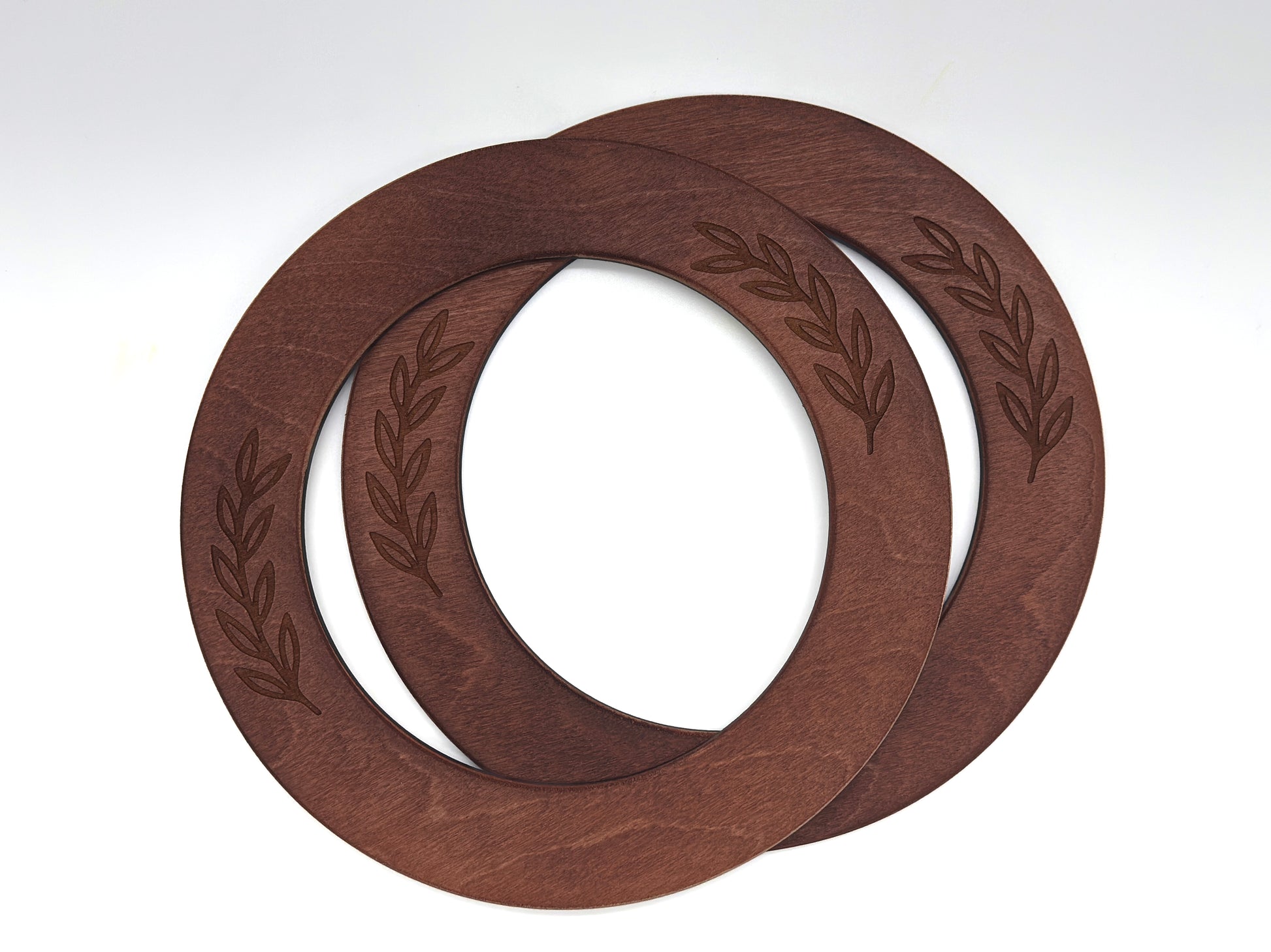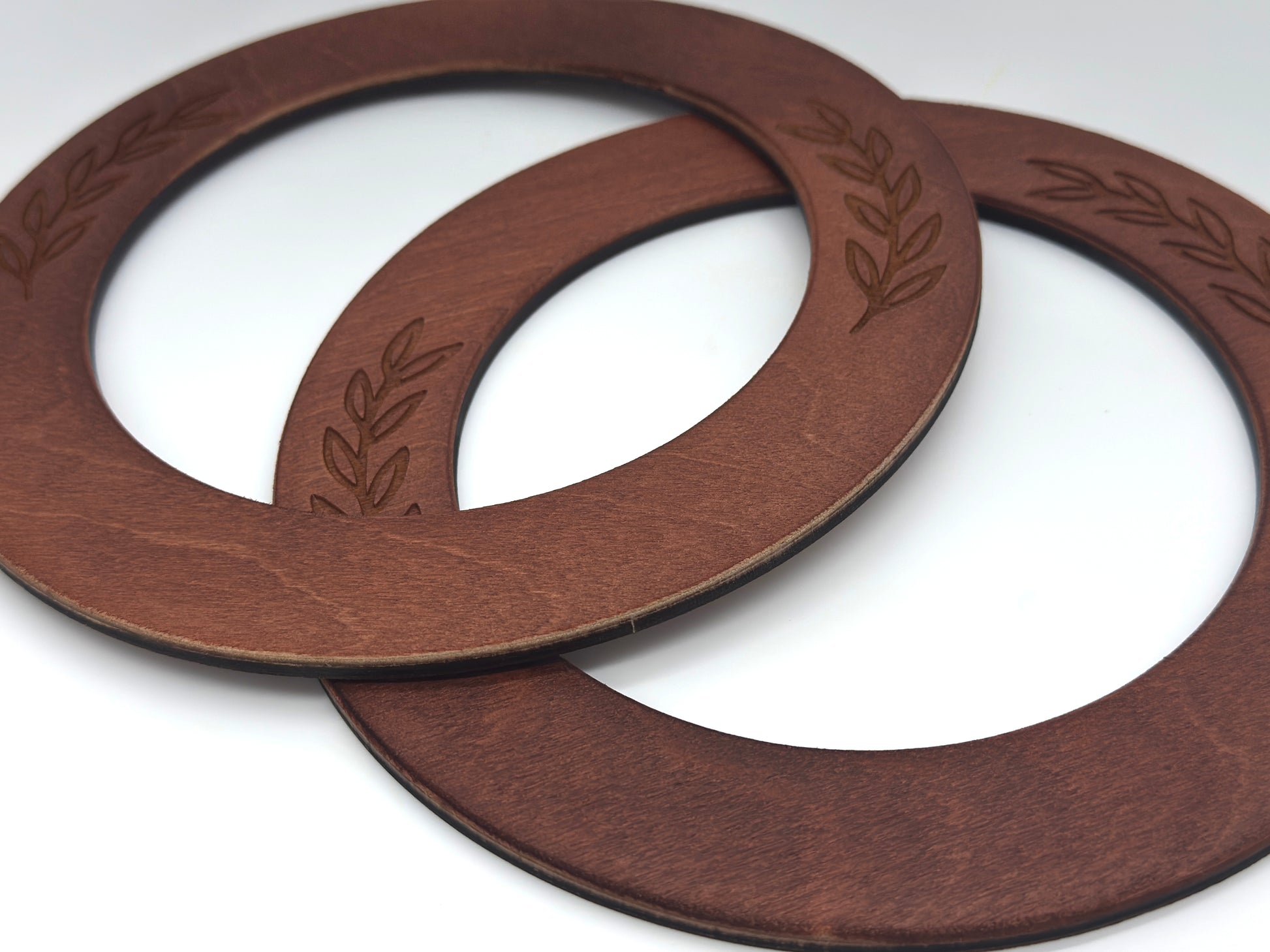 Okrągłe rączki do torebki drewniane z grawerem gałązki – średnica 19 cm